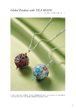 掛札誠子著作書No.2の応用編。2ホールビーズだけで作る30個、90個、120個のボール球の作り方の説明、実例作品写真が掲載してあります。