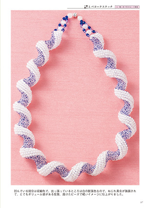 一般的に知られているビーズステッチ(Peyote Stitch、Herringbone Stitch 等々)のテクニックを使って、ねじり模様(波型模様)を考えて、アクセサリーを作ってみました。