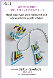 2ホールビーズを使って作るペヨーテステッチの作業工程の説明と同時に、2ホールビーズの扱い方の基本的な考え方の説明が掲載してあります。